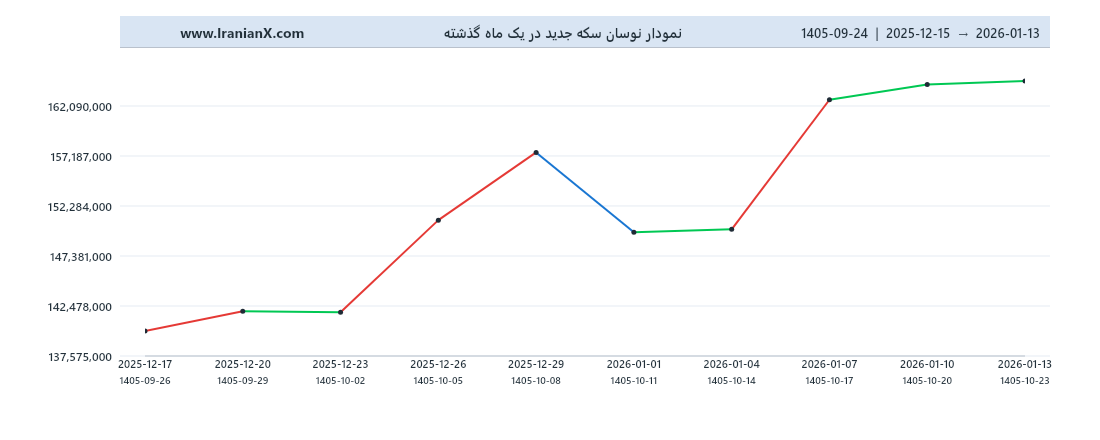 نمودار 30 روز گذشته سکه تمام جدید به تومان