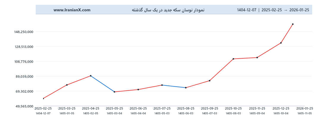 نمودار 365 روز گذشته سکه تمام جدید به تومان